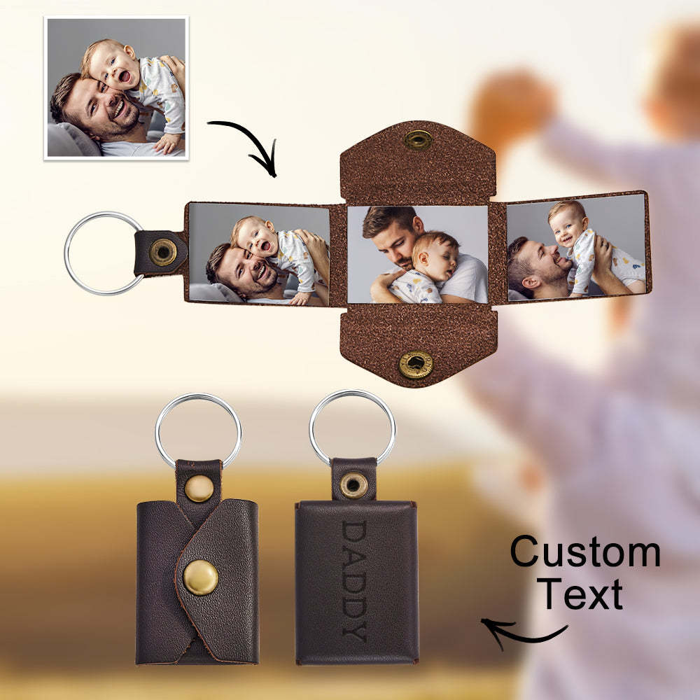 Mini Envelope Photo Keychain Personalized Vintage Engraved Leather Keychain Father's Day Gifts