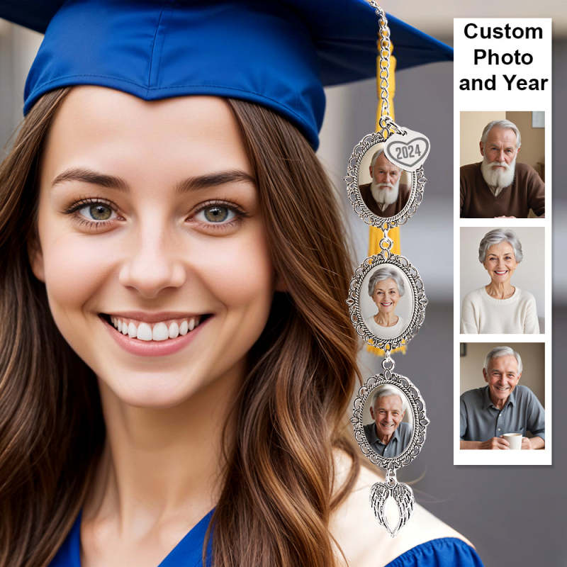 Persoanlized Graduation Tassel Photo Charm with Angel Wings, Memorial Graduation Gift For Her, Graduation 2025