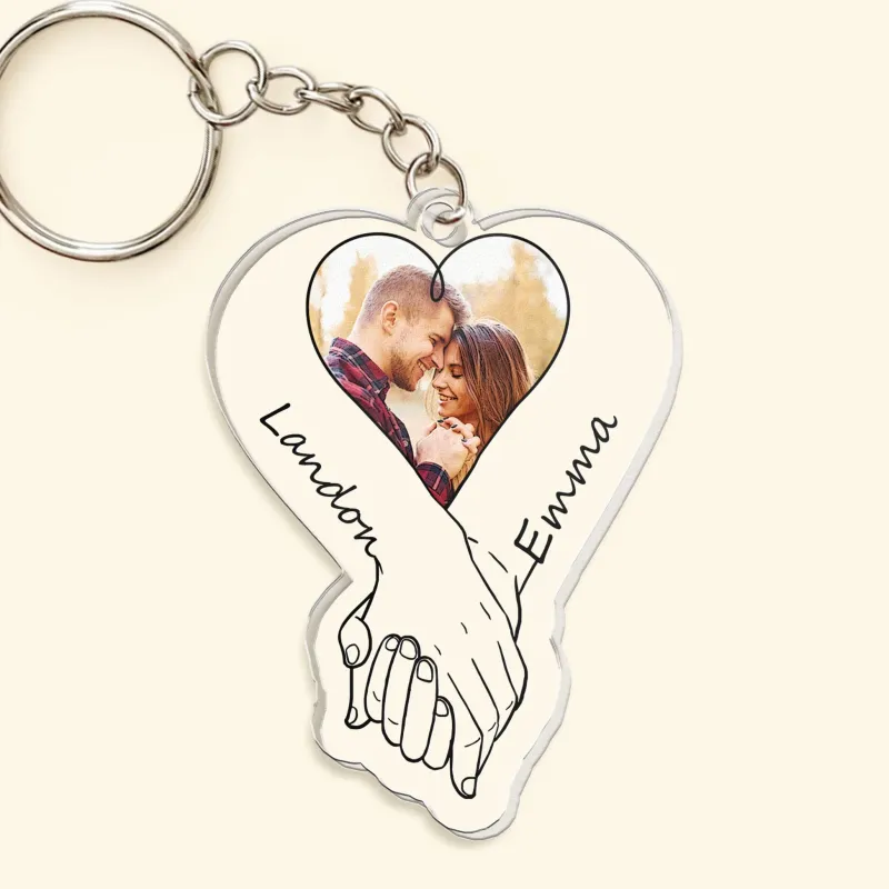 Personalized Acrylic Photo Keychain Upload Photo Couples Anniversary Holding Hands