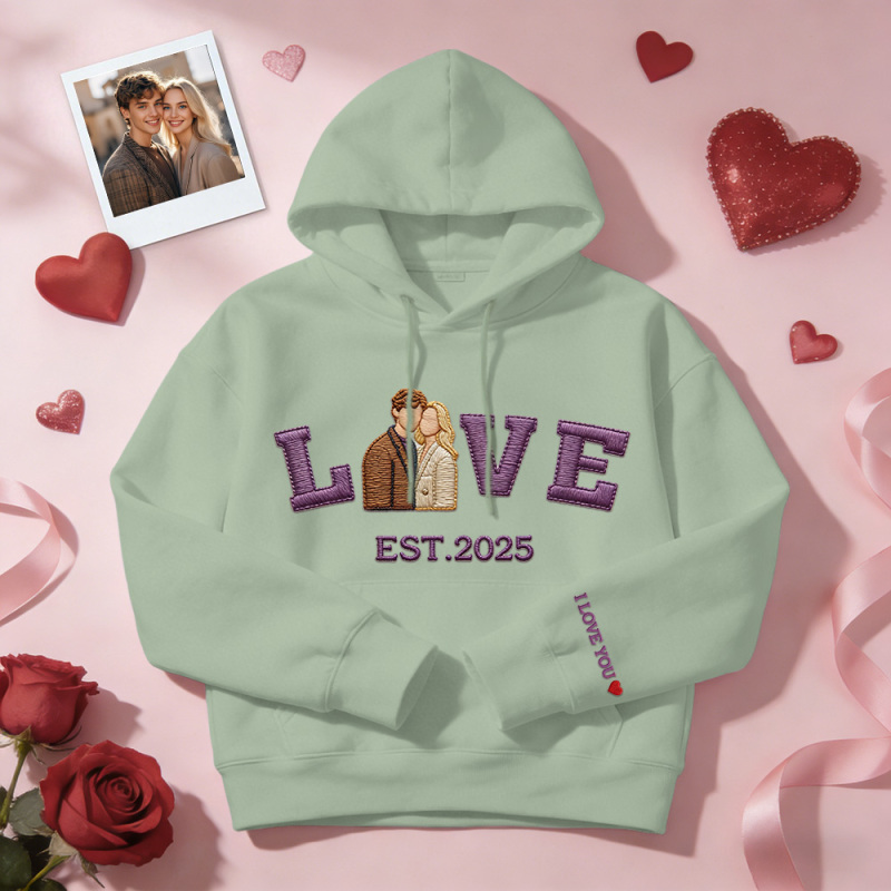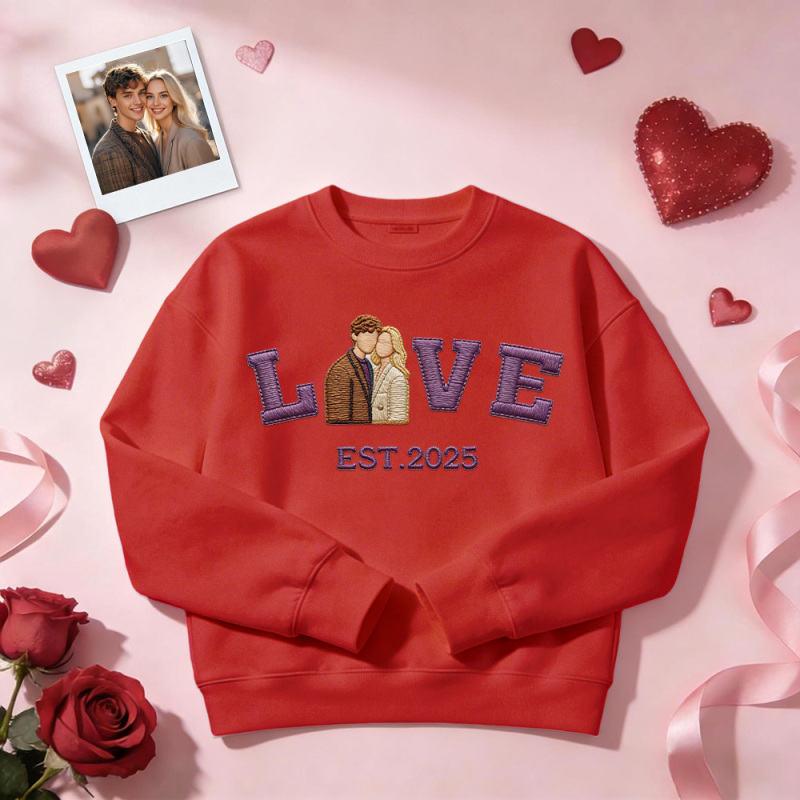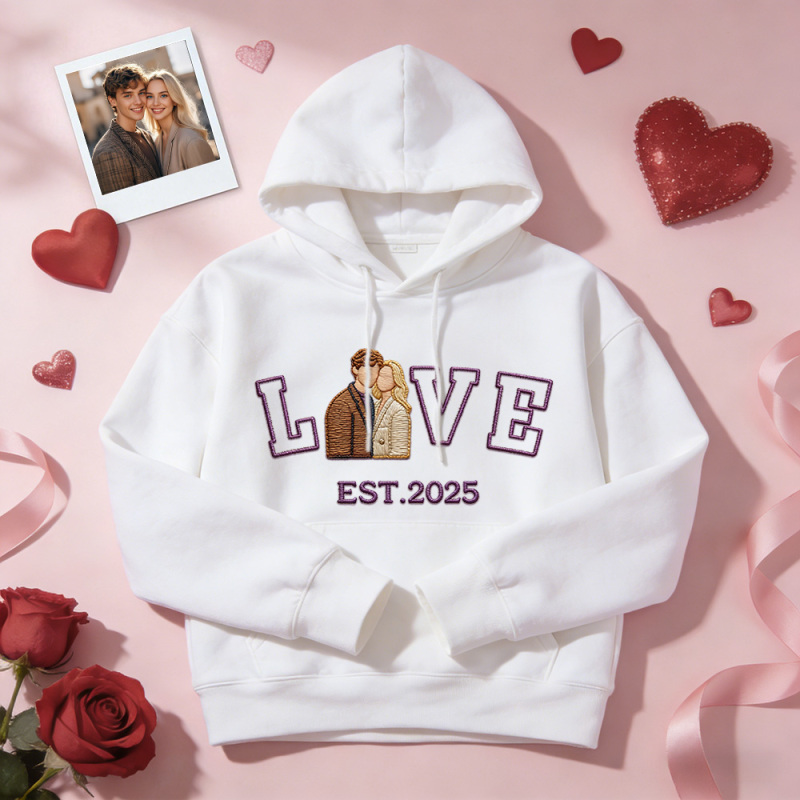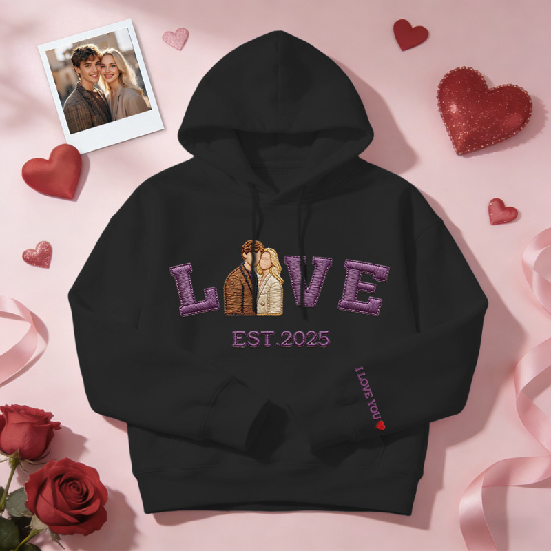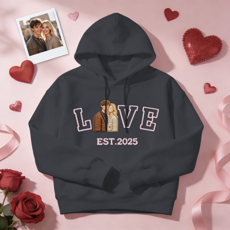 Personalized Embroidered Photo Couple LOVE Est Year Sweatshirt/Hoodie