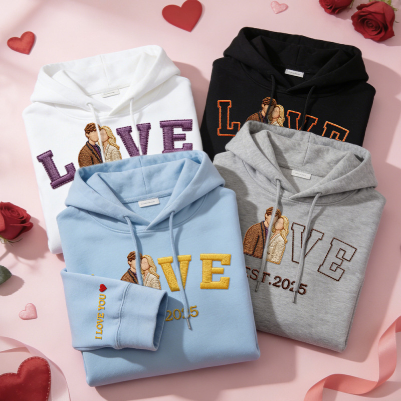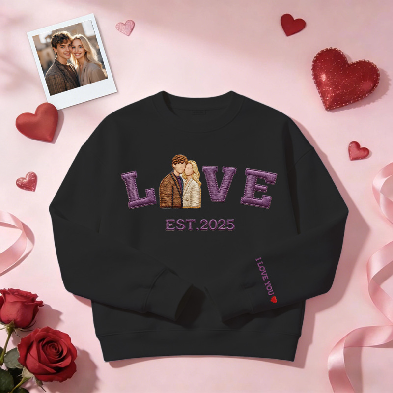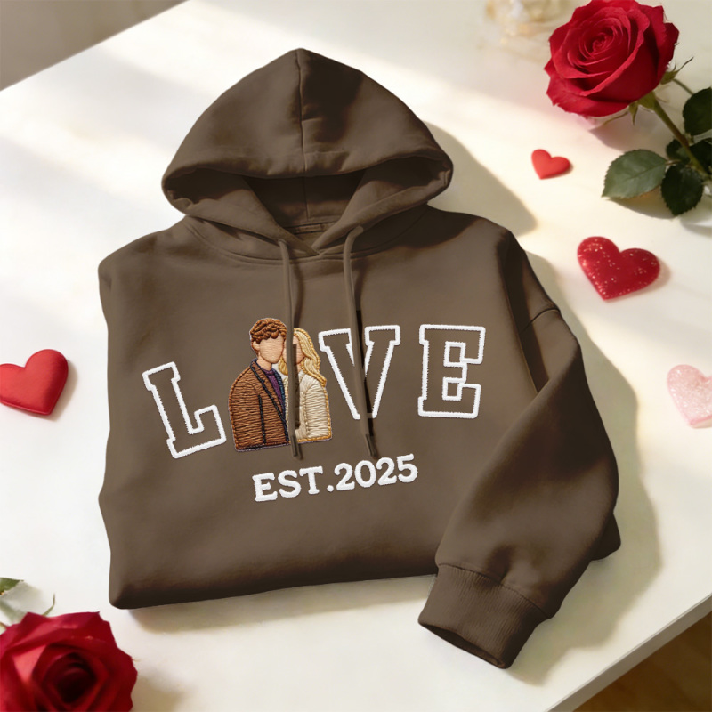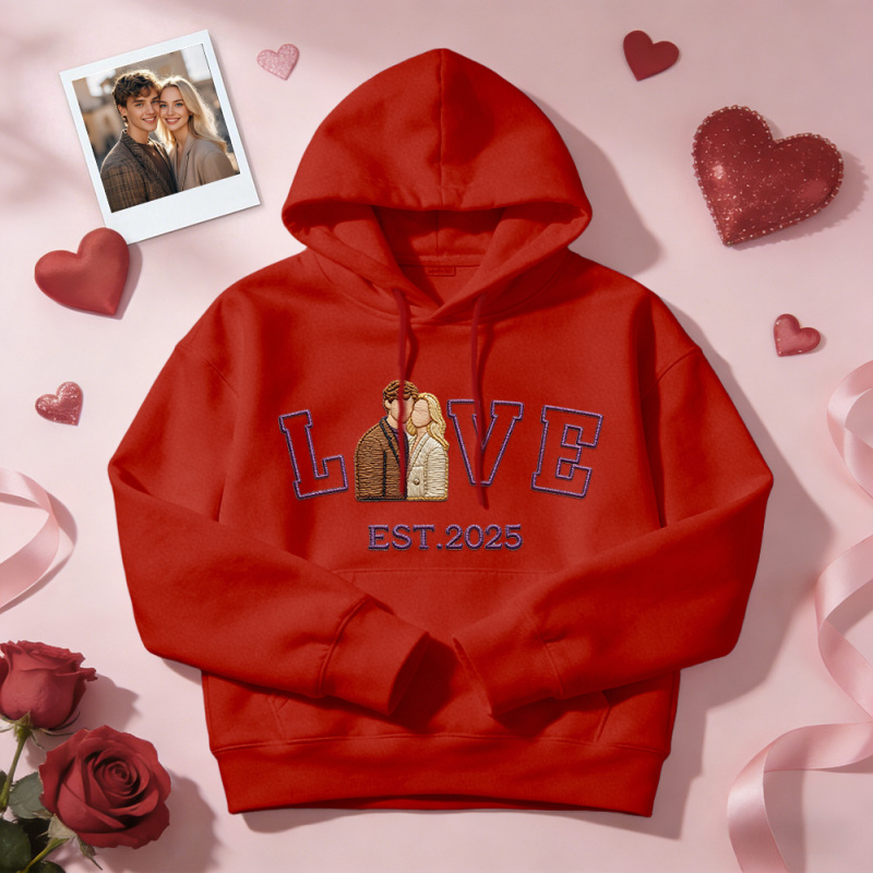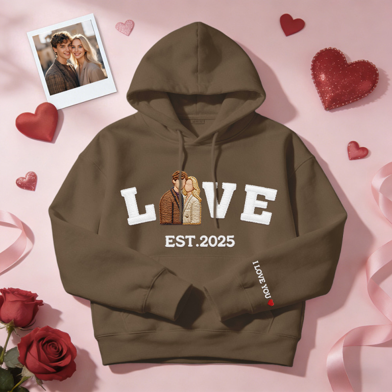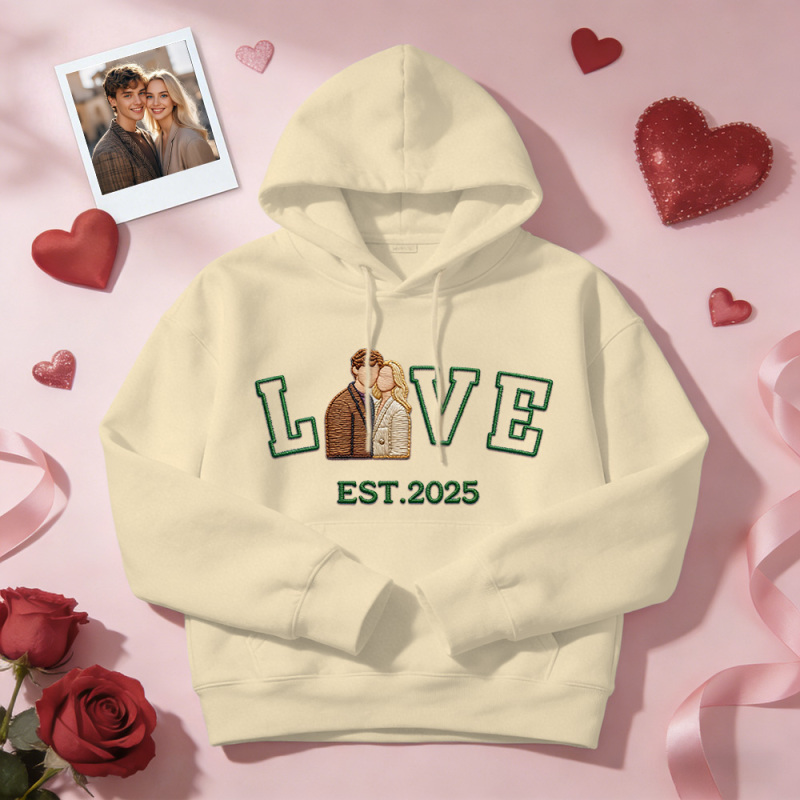 Personalized Embroidered Photo Couple LOVE Est Year Sweatshirt/Hoodie