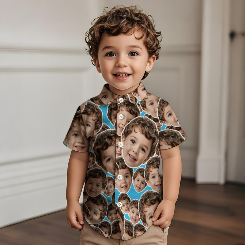 Personalized Face Hawaiian Shirt Summer Vacation Face Mash Shirt Kids Face Hawaiian Shirt