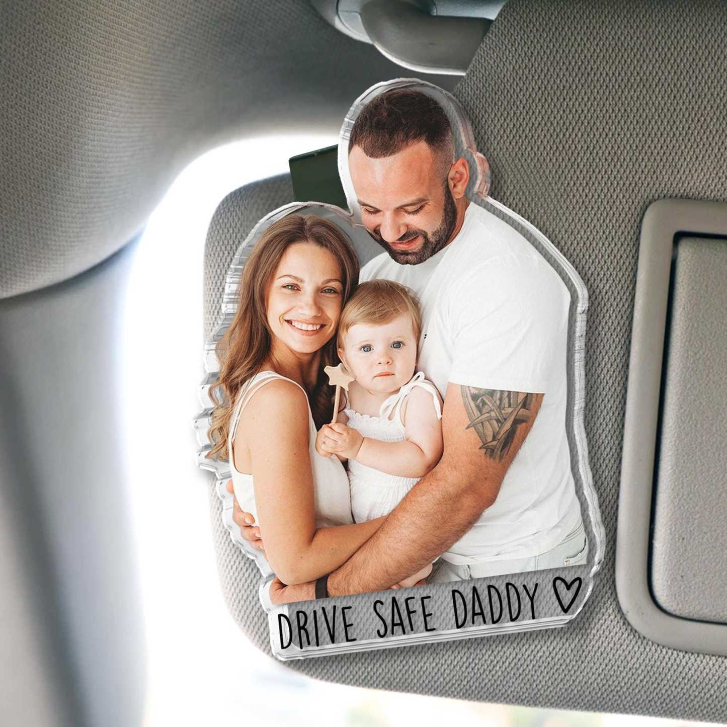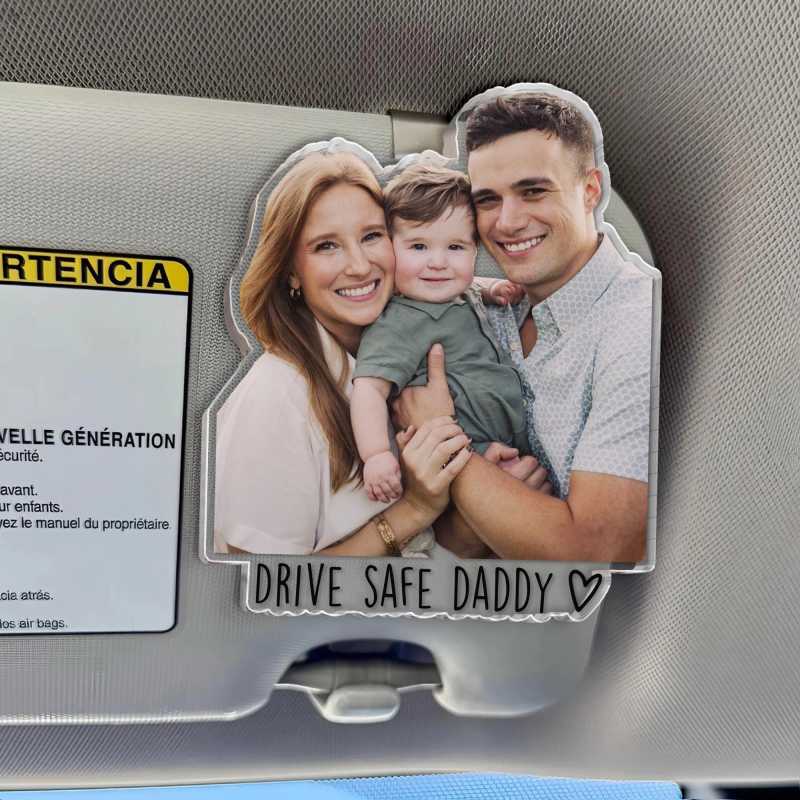 Personalized Father's Day Gift For Dad, Custom Photo Car Visor Clip, Baby Photo Car Sun Visor Clip, Drive Safe Daddy, Gift For Husband