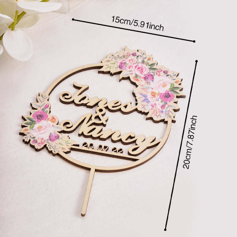 Personalized Flower Cake Topper Custom Name Cake Topper for Wedding