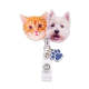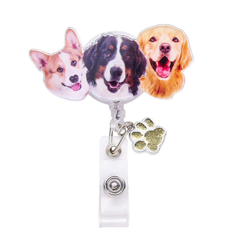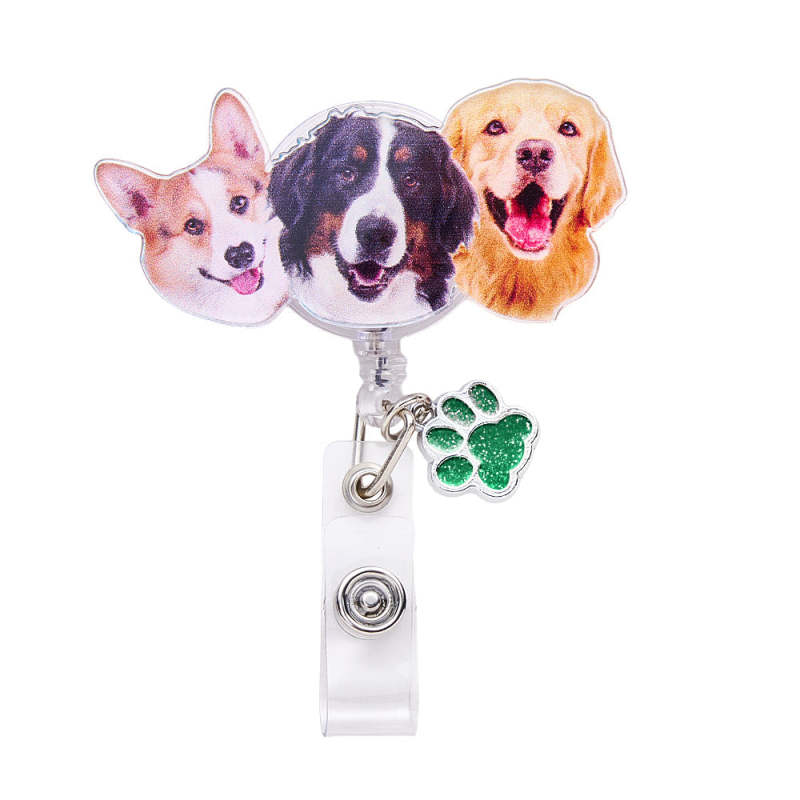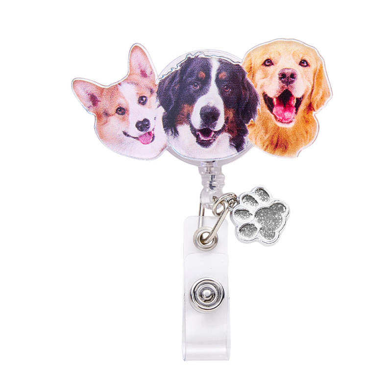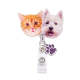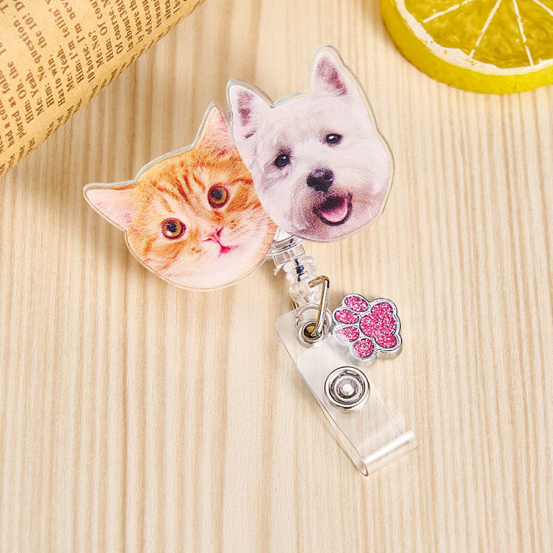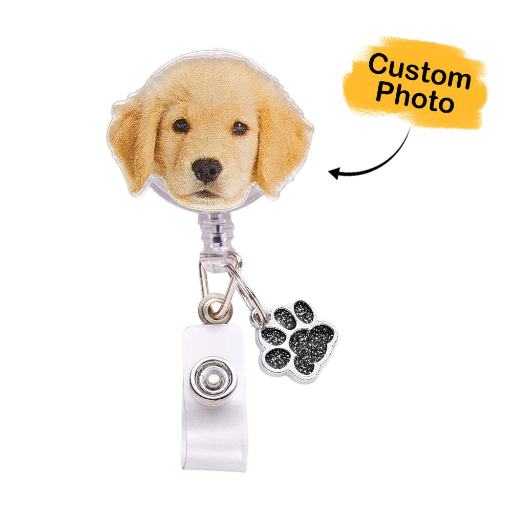 Personalized Pet Portrait Badge Reel with Paw Print Charm Gift for Nurse Pet Lover