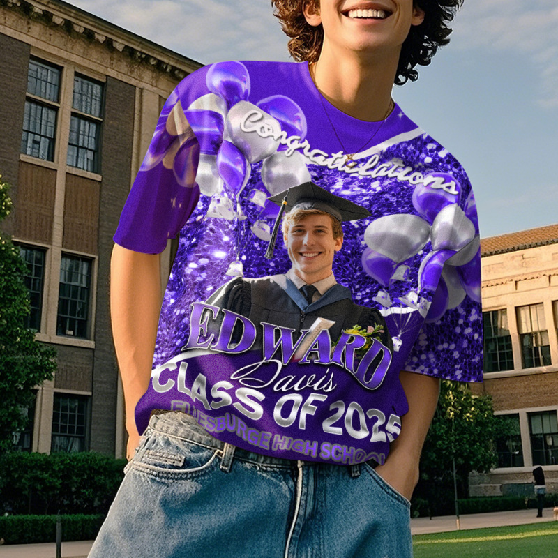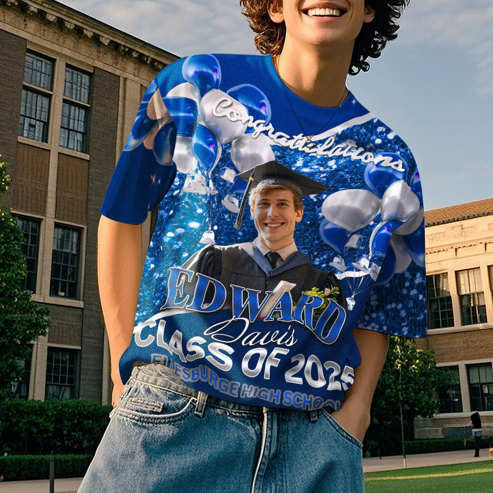 Personalized Photo 3D Graduation T-Shirt with Name & Year Gift