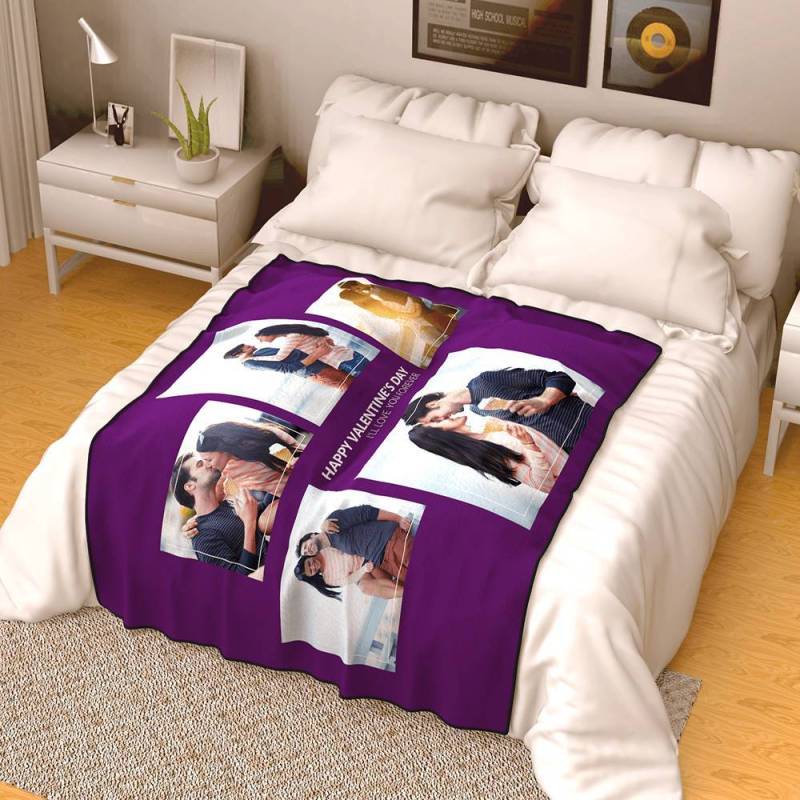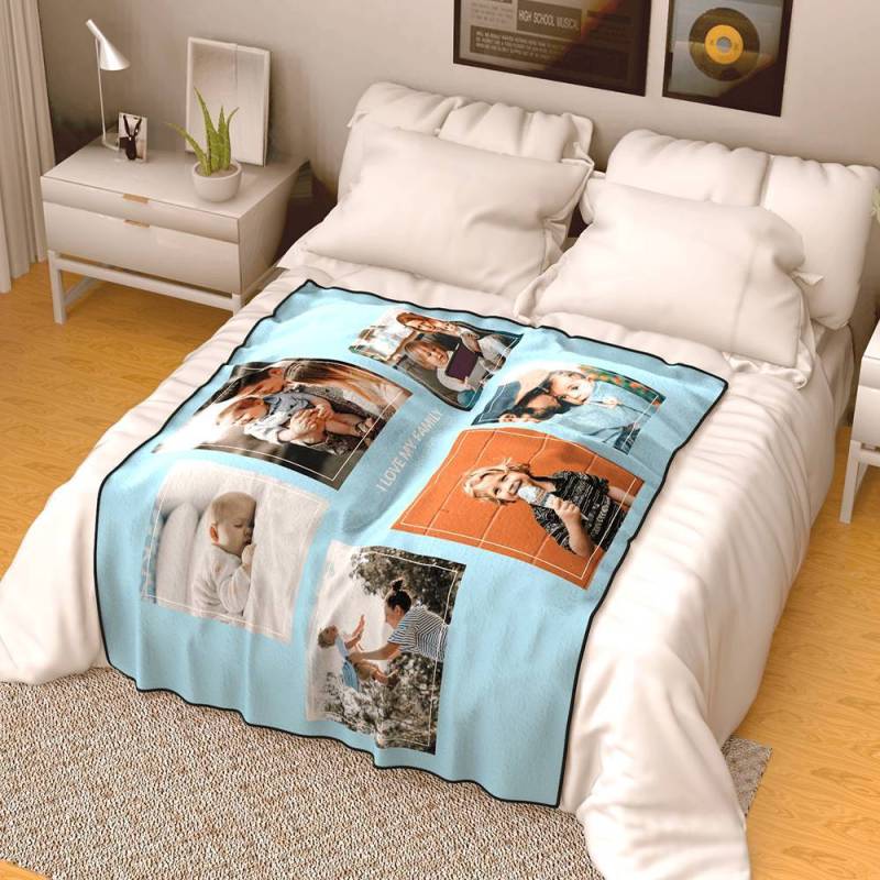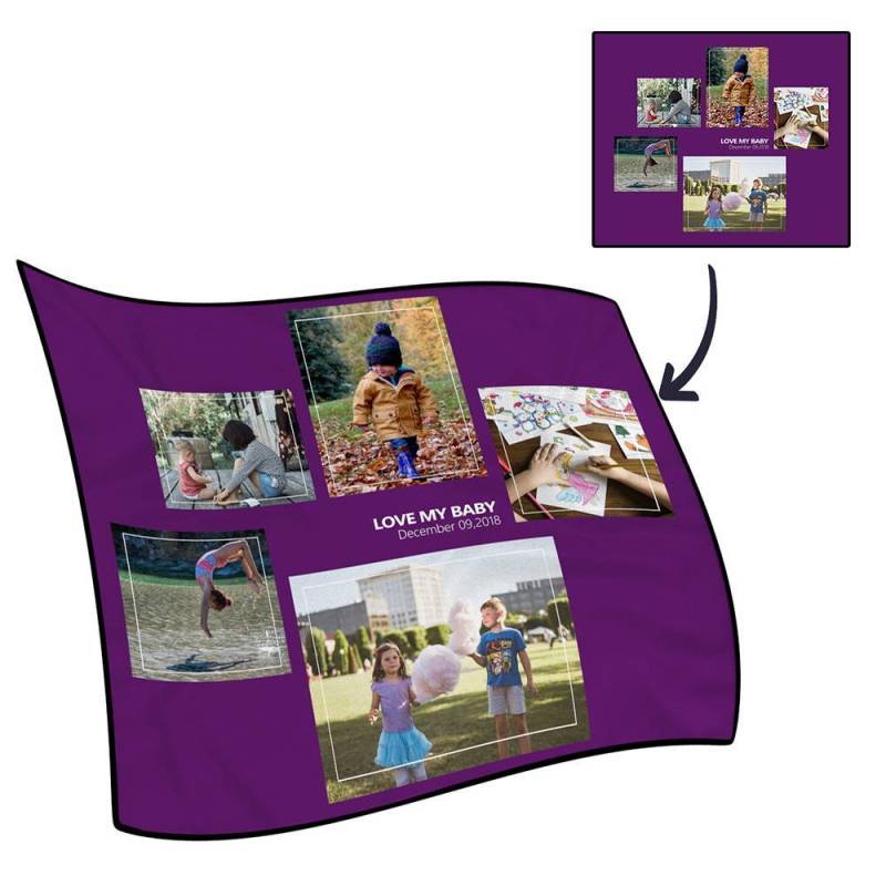 Personalized Family Photo Fleece Blanket with Text - 5 Photos
