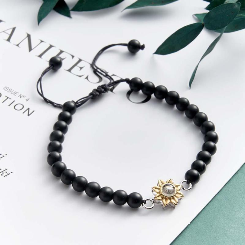 Personalized Photo Projection Beads Bracelet With Sunflower Creative Gift For Her