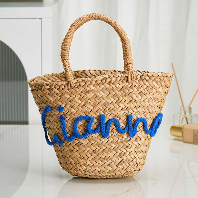 Personalized Embroidered Name Bags Straw Basket Bridal Shower Bags Customized Straw Bags Custom Beach Bag Straw Tote