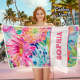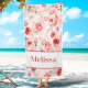 Personalized Watercolor Flower Beach Towel with Name Beach Accessories Gift for Her