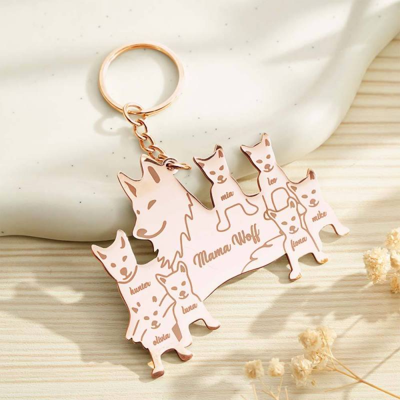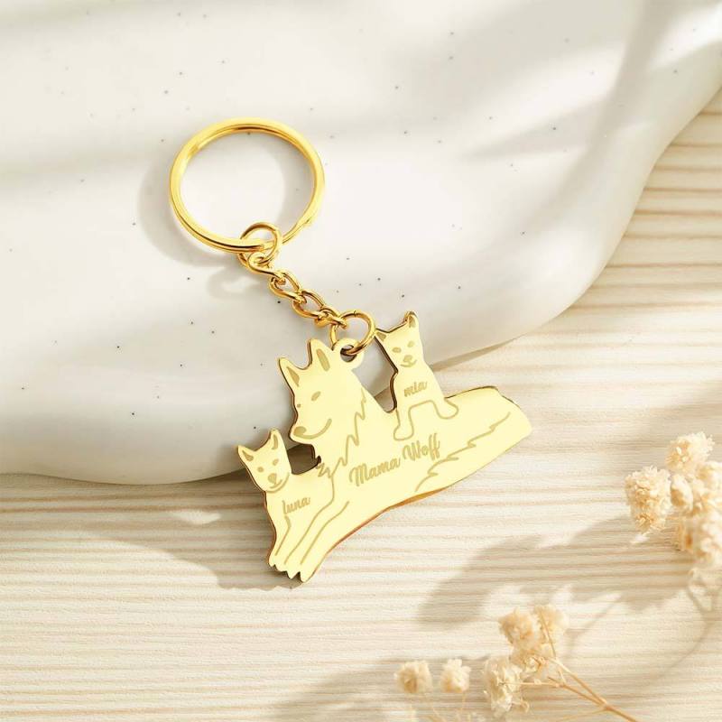 Personalized Wolf Keychain with Engraved Family Names Gift for Family
