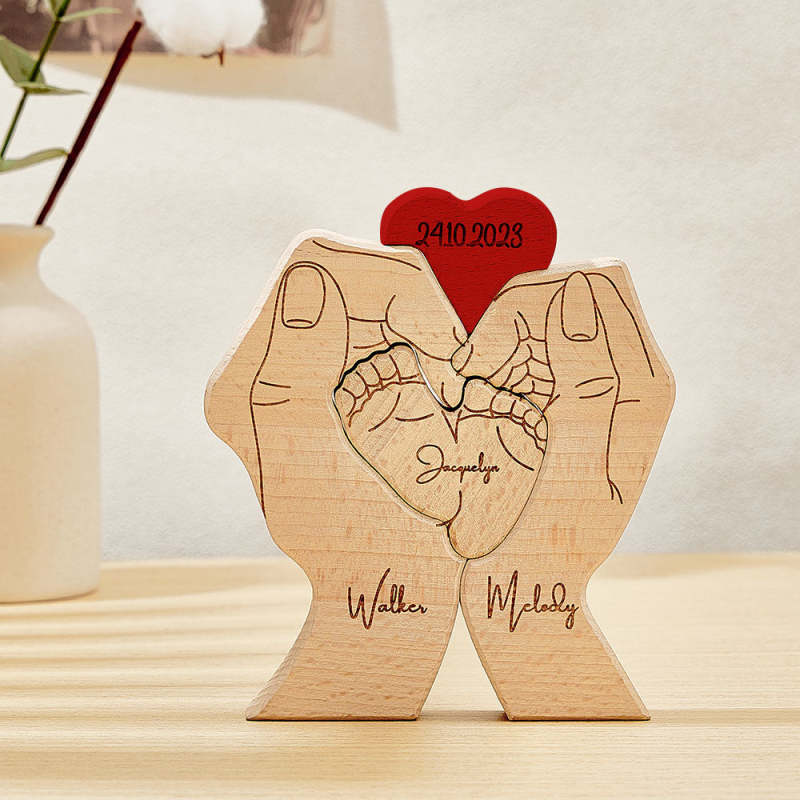 Personalized Wooden Baby Feet Custom Family Member Names Date Puzzle Home Decor Gifts