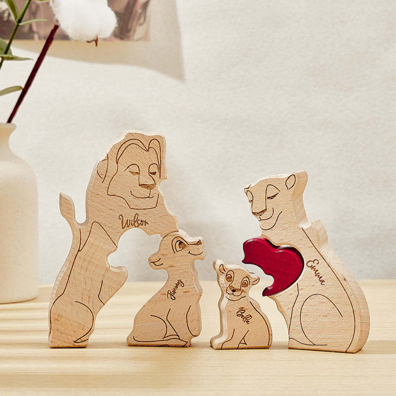 Personalized Wooden Lion Puzzle Custom Lion Family Names Puzzle Home Decor Gifts
