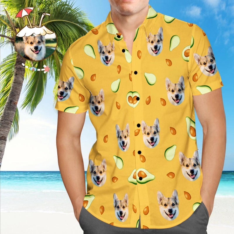 Custom Hawaiian Shirt with Dog on It Personalized Hawaiian Shirt Avocado Beach Shirt