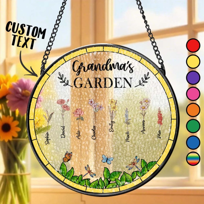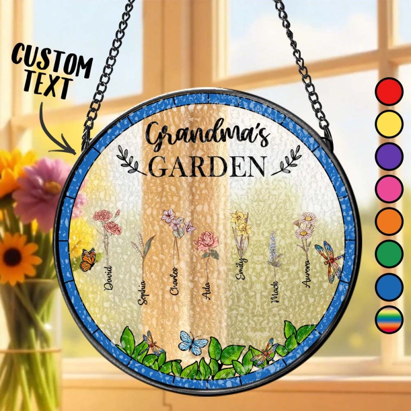 Birth Flower Grandma's Garden - Personalized Stained Glass Window Hanging Suncatcher