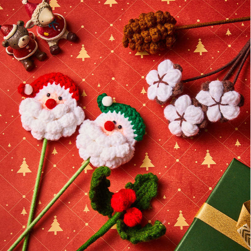 Christmas Crochet Flower Handmade Santa Claus Pine Nut Cotton Knitted Flower Christmas Day Gift