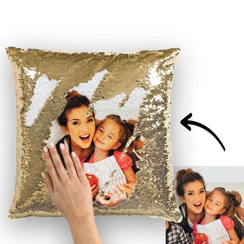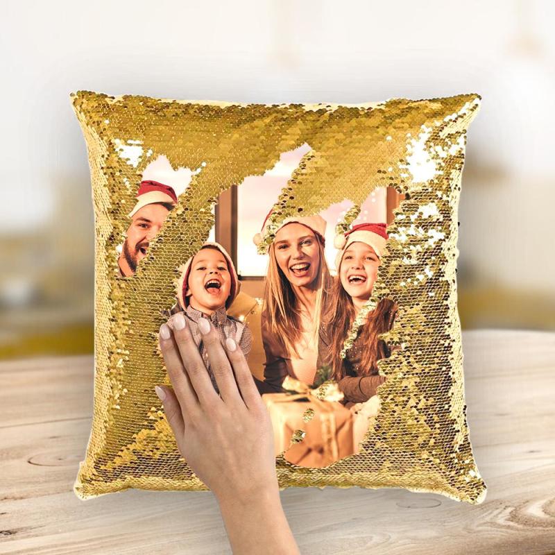 Christmas Gift Custom Love Couple Photo Magic Sequins Pillow Multicolor Shiny 15.75*15.75