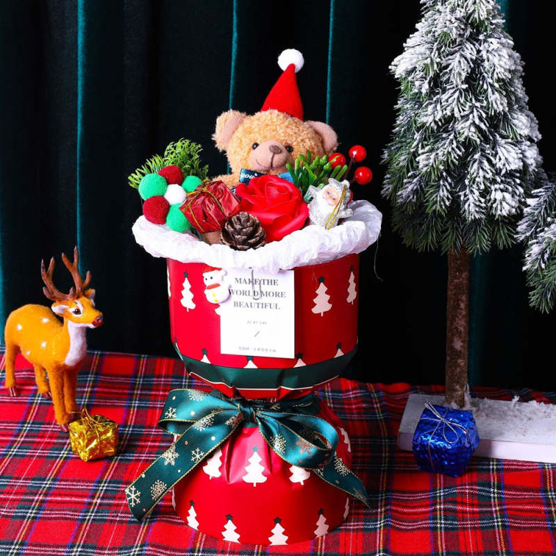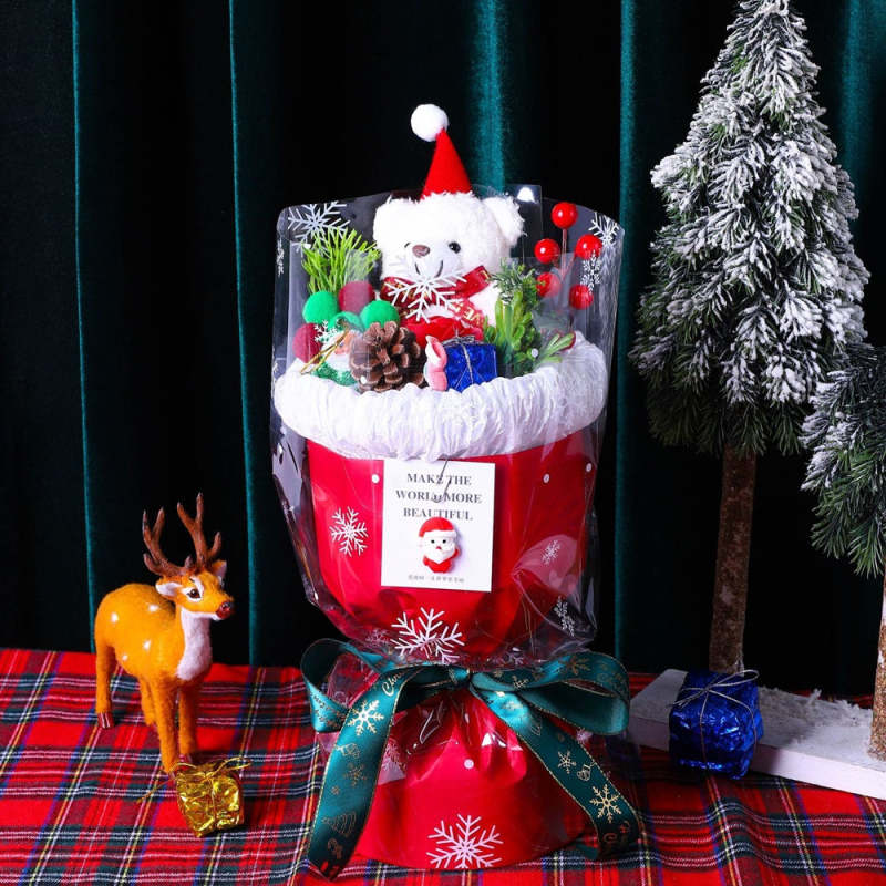 Christmas Plush Doll Bear Bouquet Creative Toy Soap Flower Christmas Day Gift