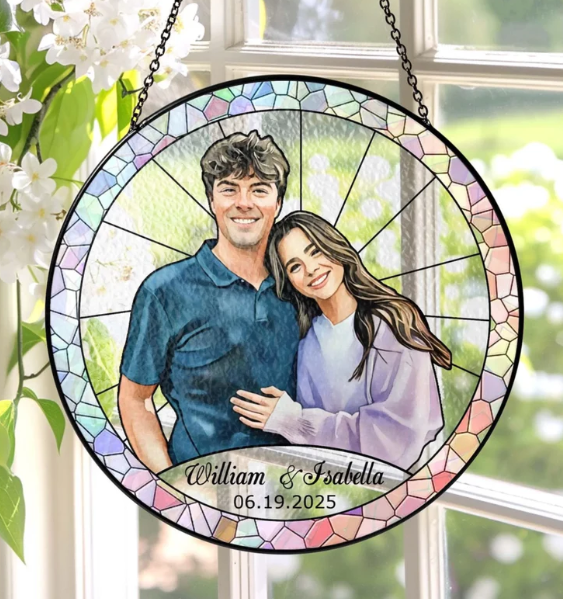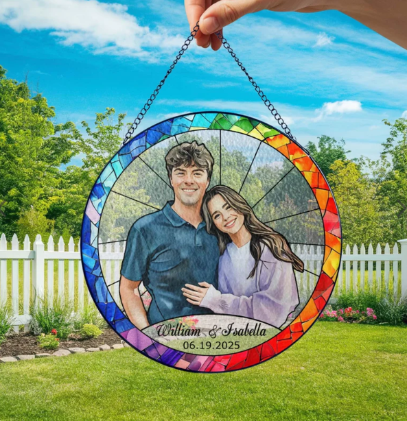 Couple Portrait Colorful Stained Glass Style - Personalized Window Stained Glass, Suncatcher Window Decor Gift For Husband Wife