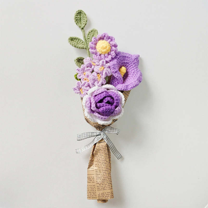 Crochet Flowers Bouquet Handmade Knitted Rose Bouquet Gift for Her Graduation Gift