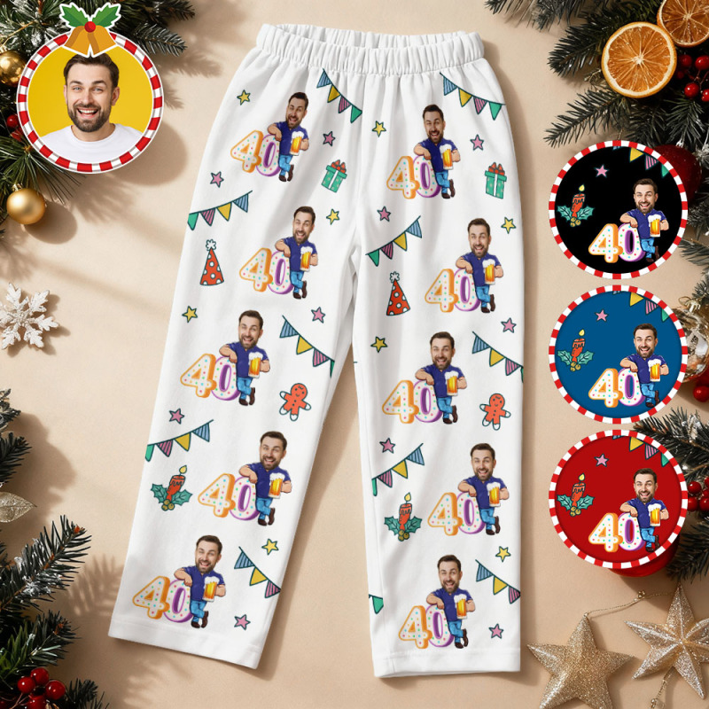 Custom Birthday Face Long Sleeve Pajamas with Beer Personalized Photo Pajamas Gift