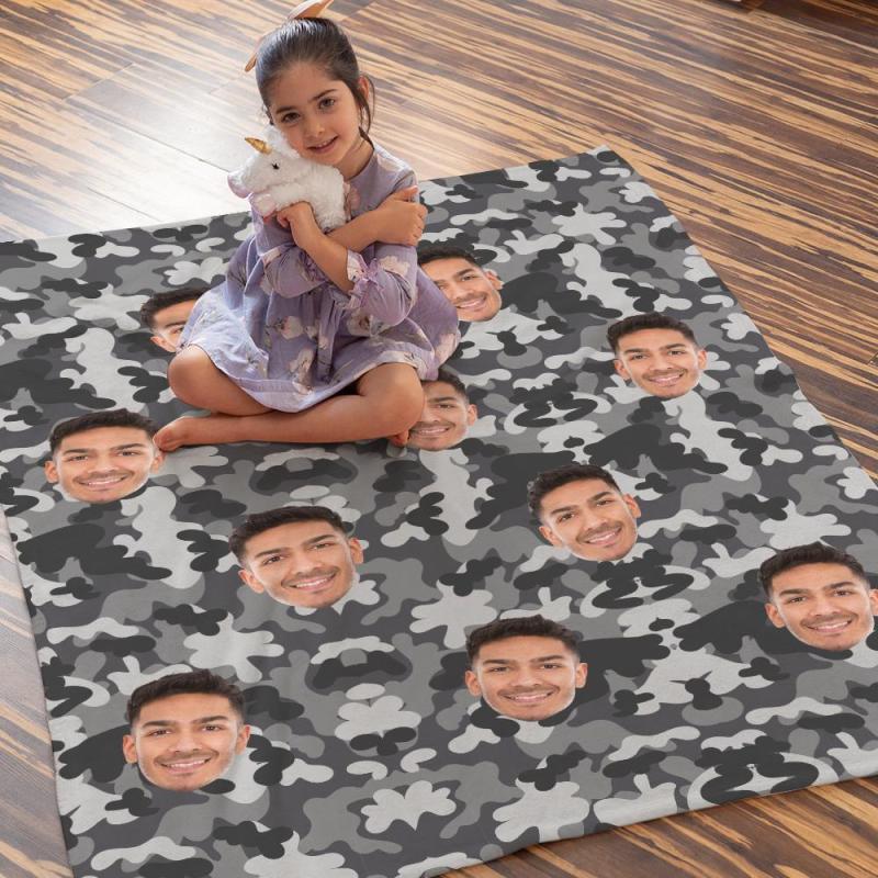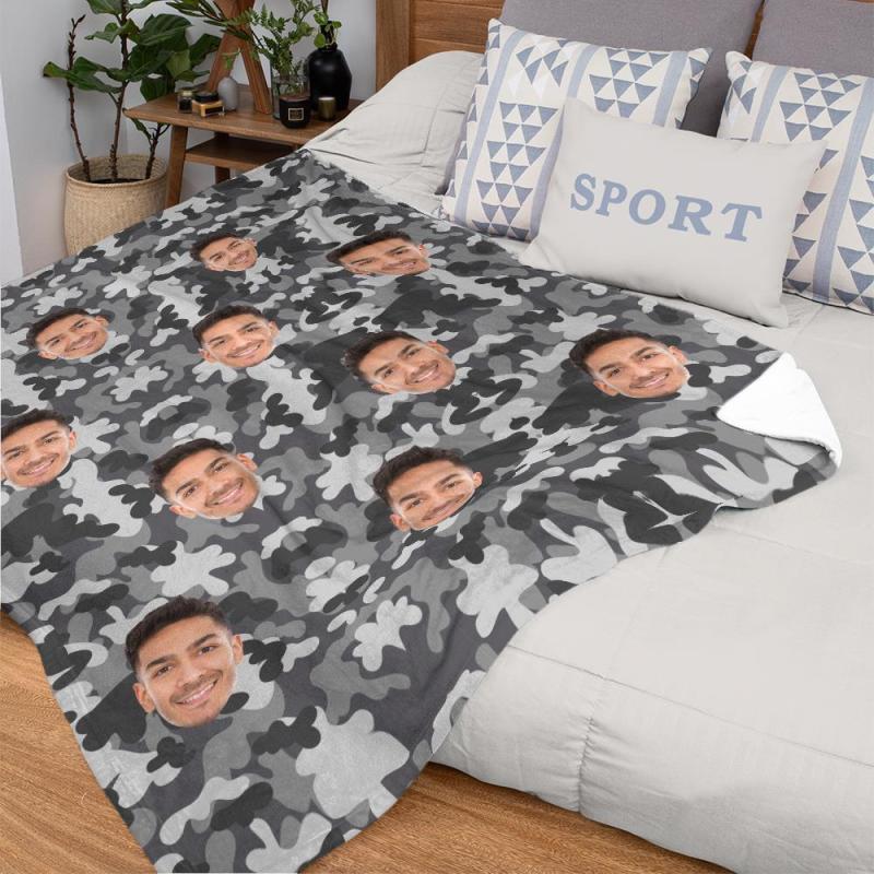 Custom Blanket Personalized Photo Camouflage Blanket For Lover - Dark Grey