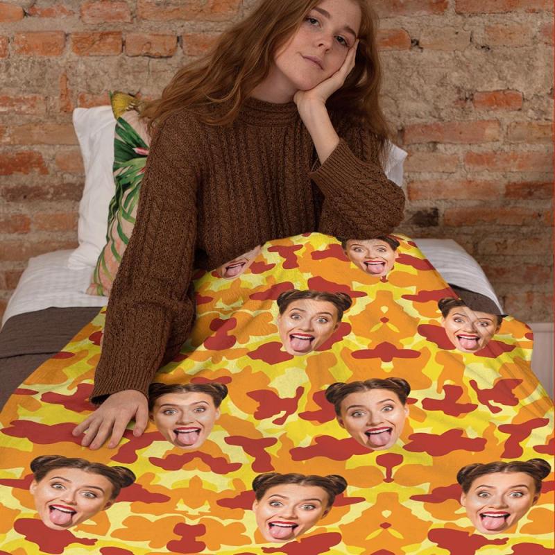 Custom Blanket Personalized Photo Camouflage Blanket For Lover - Orange