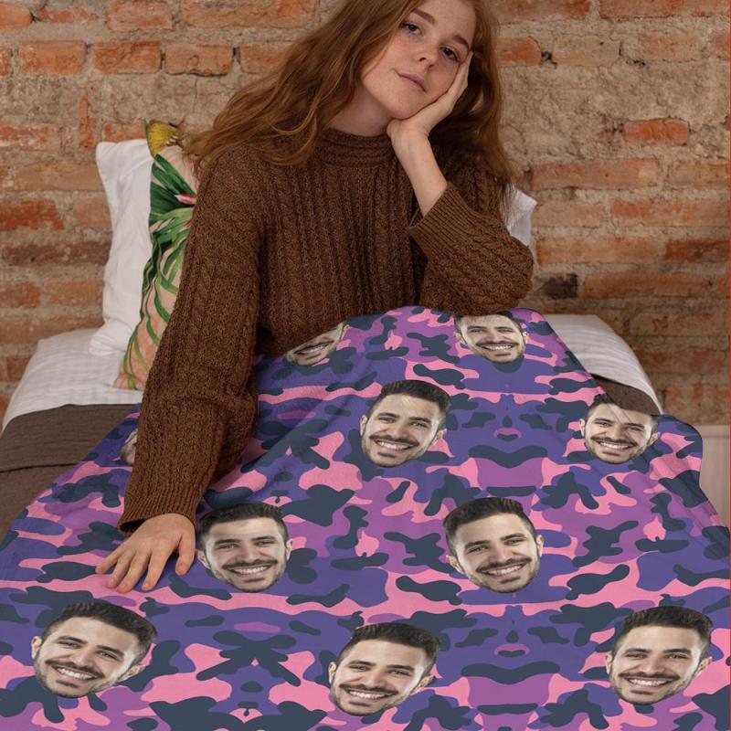 Custom Blanket Personalized Photo Camouflage Blanket For Lover - Purple