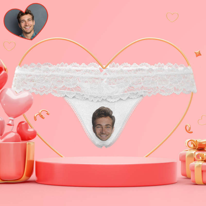 Custom Boyfriend Face Women's Lace Thong Naughty Gift for Her
