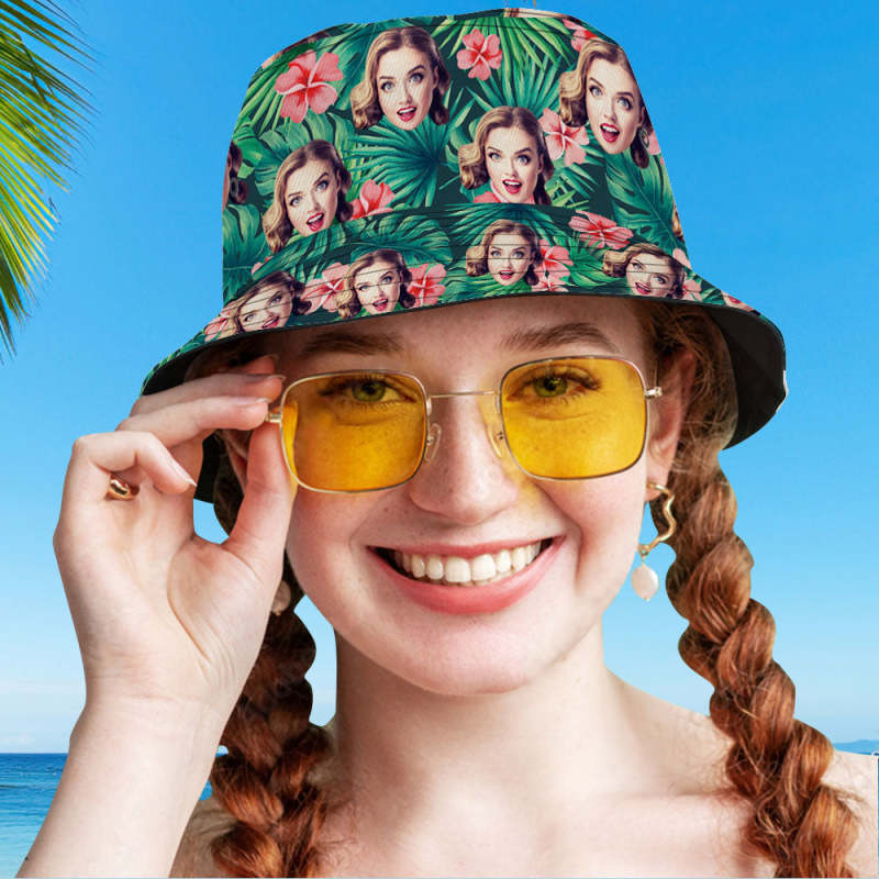 Custom Bucket Hat Face Unisex Fisherman Hat Summer Hat Hawaiian Style Red Flowers