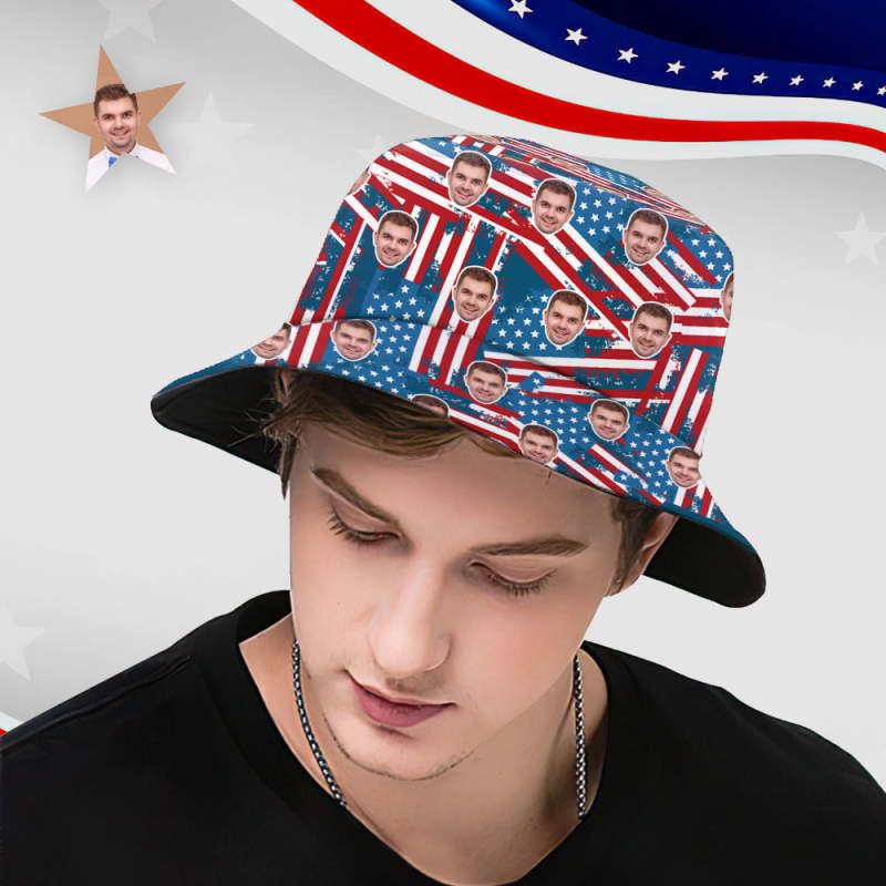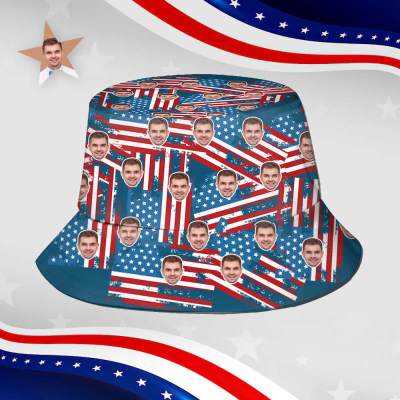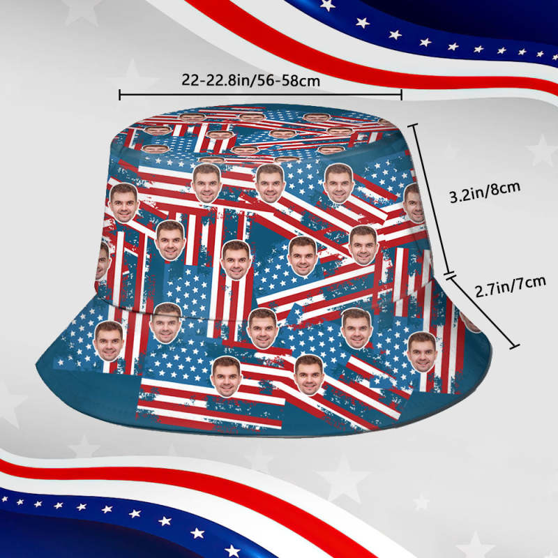 Custom Bucket Hat Face Unisex Fisherman Hat Summer Hat Independence Day