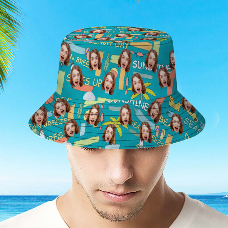 Custom Bucket Hat Face Unisex Fisherman Hat Summer Hat Sunshine Beach