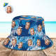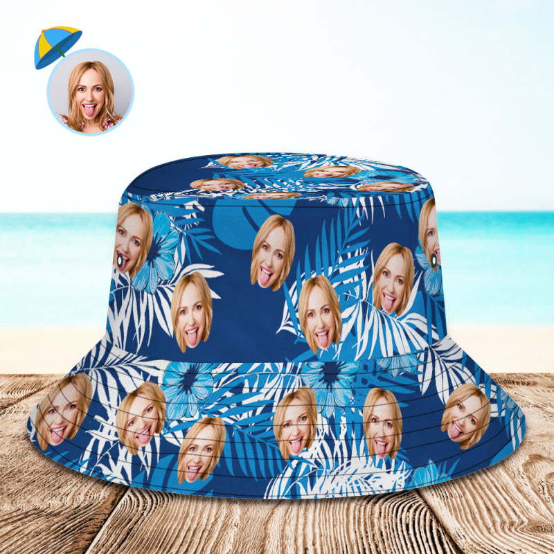 Custom Bucket Hat Personalized Face All Over Print Tropical Flower Print Hawaiian Fisherman Hat - Blue Leaves