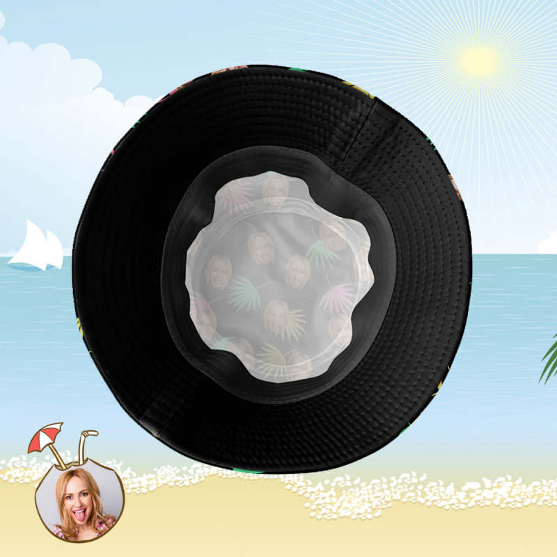 Custom Bucket Hat Personalized Face All Over Print Tropical Flower Print Hawaiian Fisherman Hat - Colorful Leaves