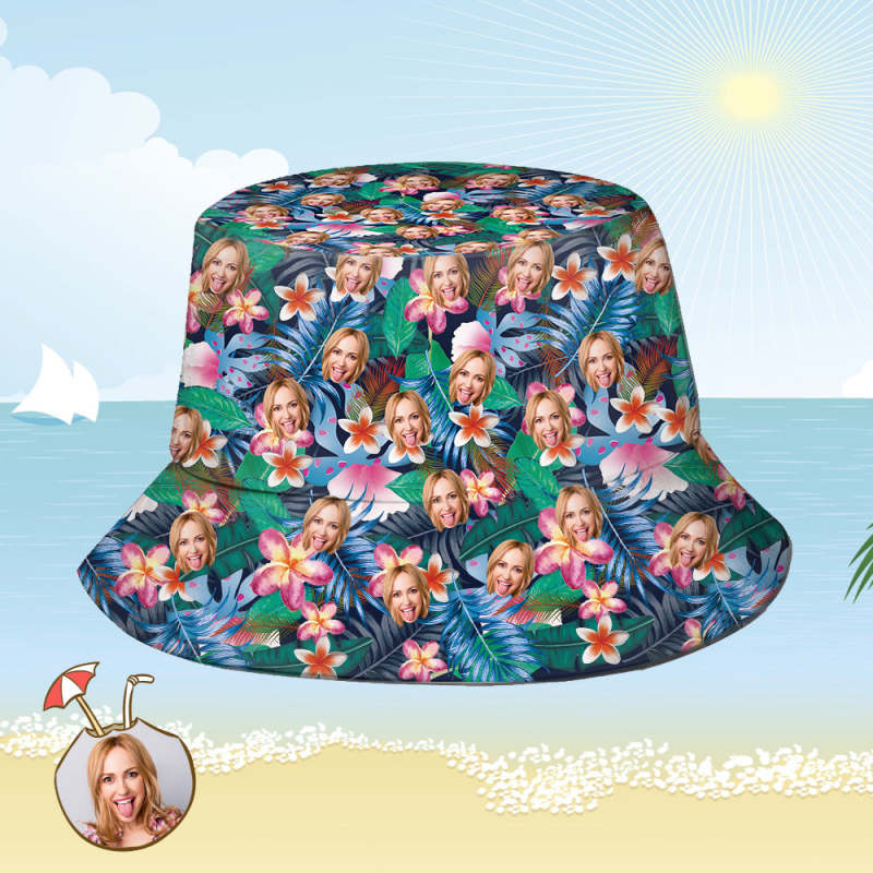 Custom Bucket Hat Personalized Face All Over Print Tropical Flower Print Hawaiian Fisherman Hat - Fashion Flowers