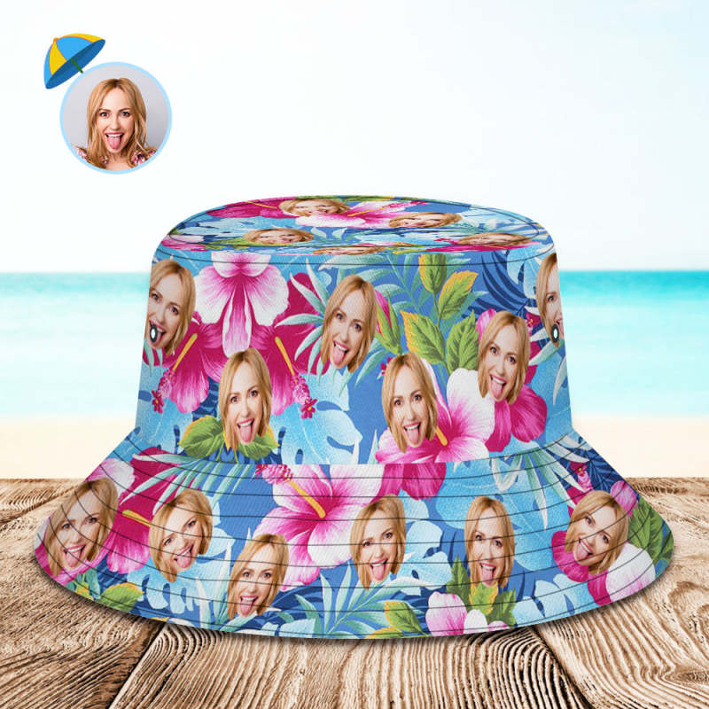 Custom Bucket Hat Personalized Face All Over Print Tropical Flower Print Hawaiian Fisherman Hat - Pink Flowers