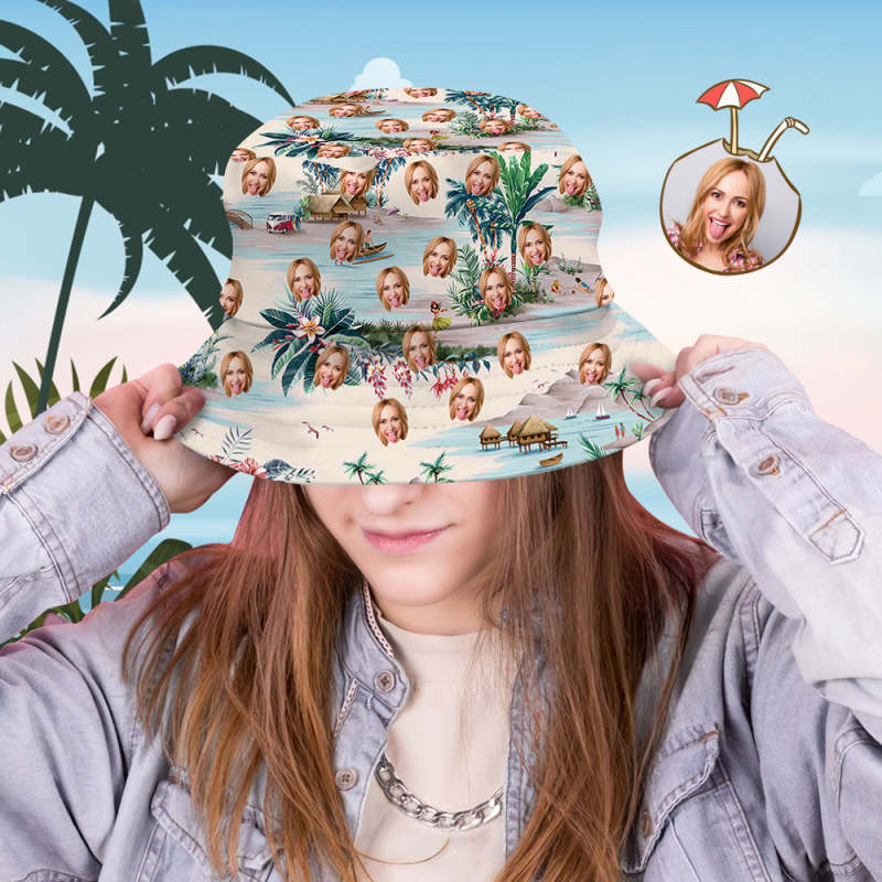 Custom Bucket Hat Personalized Face All Over Print Tropical Flower Print Hawaiian Fisherman Hat - Sea View