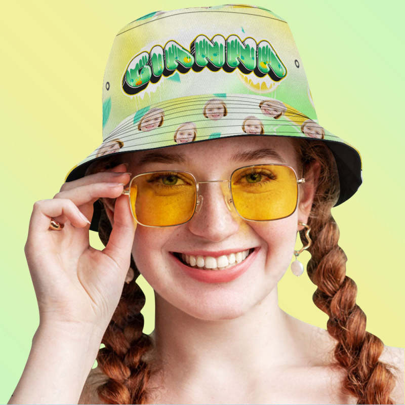 Custom Bucket Hat Unisex Face Bucket Hats Personalized Photo and Name Summer Green Hats