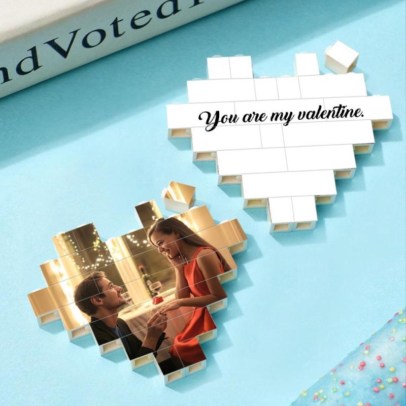 Custom Building Block Puzzle Personalized Heart Shaped Photo & Text Brick Gift for Couples