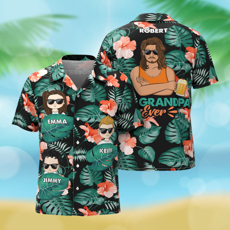 Custom Cartoon Hawaiian Shirt Best Dad Papa Ever Birthday Loving Gift For Father Grandpa Grandfather Custom Name Fathers Day Shirt Gift
