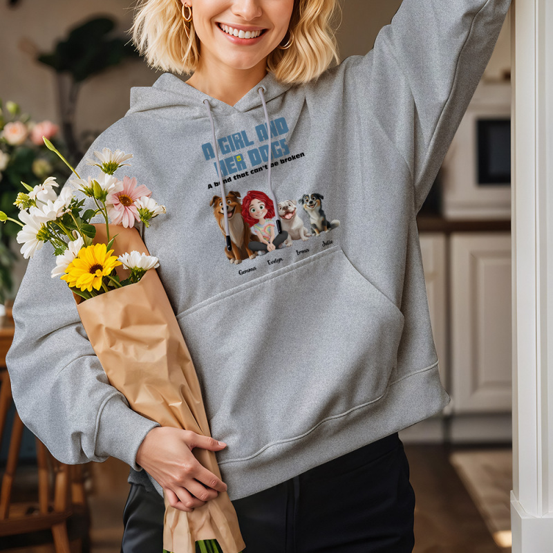 Custom Cartoon Hoodie Unbreakable Bond With My Dogs Personalized Name Cartoon Hoodie Gift