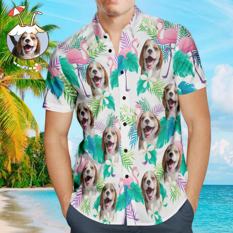 Custom Dag Face Men's Hawaiian Shirts with Flamingo for Pet Lover