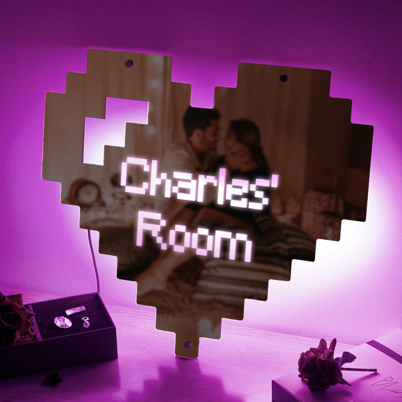 Custom Engraved Mirror Light Pixel Style Heart Home Gift
