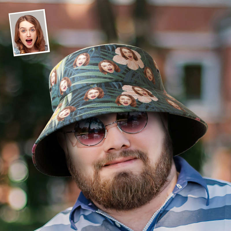 Custom Extra Large Bucket Hats Unisex Face Bucket Hat Personalize Wide Brim Outdoor Summer Cap Hiking Beach Sports Hats Hawaiian Style Gift for Lover