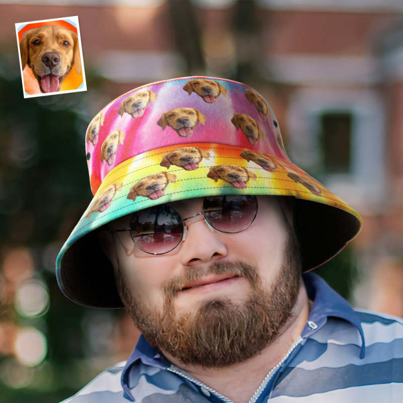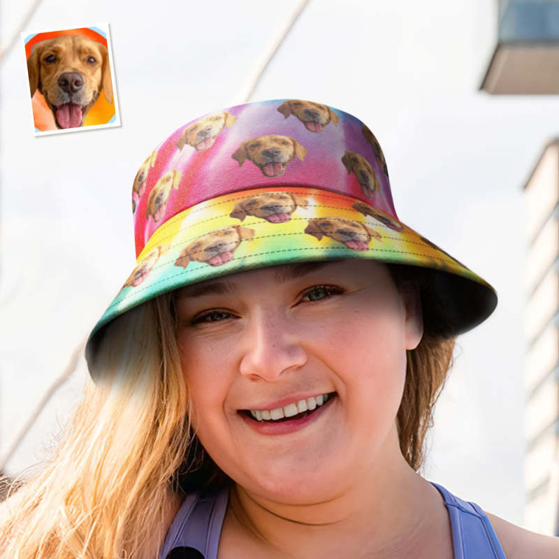 Custom Extra Large Bucket Hats Unisex Face Bucket Hat Personalize Wide Brim Outdoor Summer Cap Hiking Beach Sports Hats Rainbow Color Bucket Hat Gift for Lover