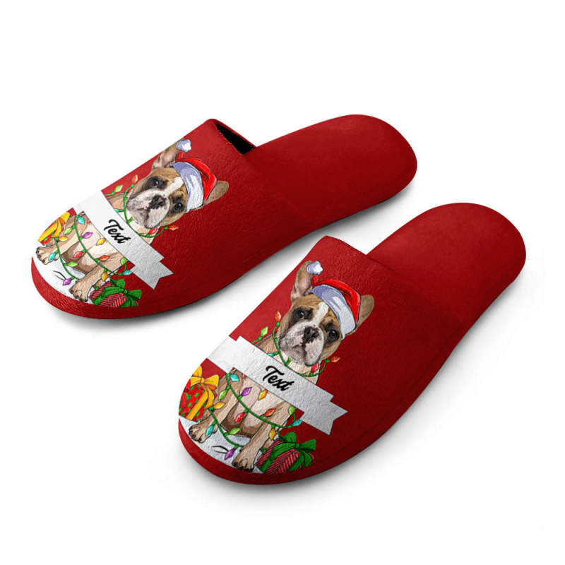 Custom Face And Text Women's and Men's Cotton Slippers Personalized Casual House Shoes Indoor Outdoor Bedroom Slippers Christmas Gift For Dog Lovers