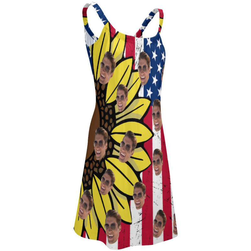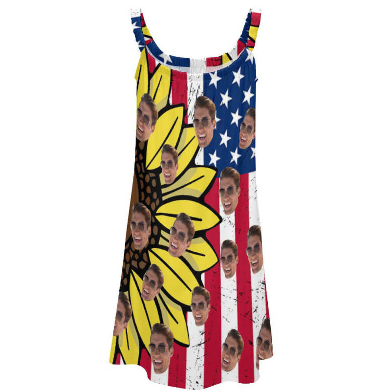 Custom Face Beach Sling Skirt Women Summer Long Skirt USA Flag Sunflower Sexy Seaside Vacation Dress
