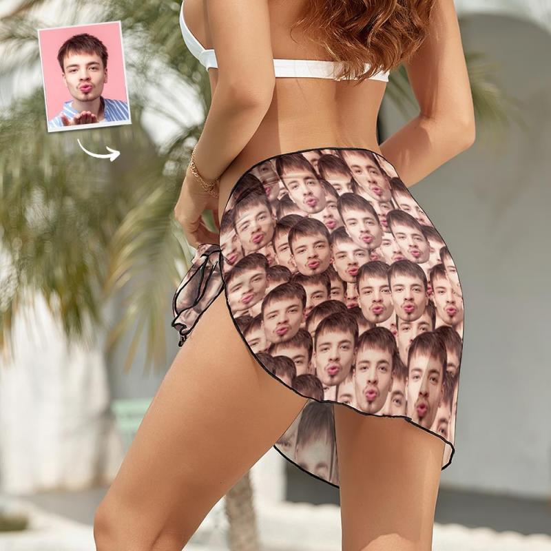 Custom Face Beach Wrap Women Short Sarongs - Face Mash