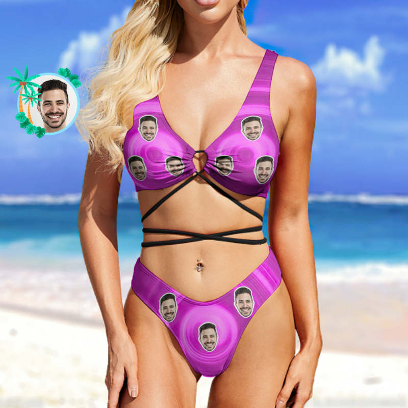 Custom Face Bikini Swimming Costume Women's Chest Strap Bathing Suit Personalized Photo Bikini for Girlfriend or Wife