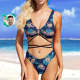 Custom Face Bikini Swimming Costume Women's Chest Strap Bathing Suit Personalized Photo Bikini Hawaiian Style Gift for Girlfriend or Wife - Blue Flowers